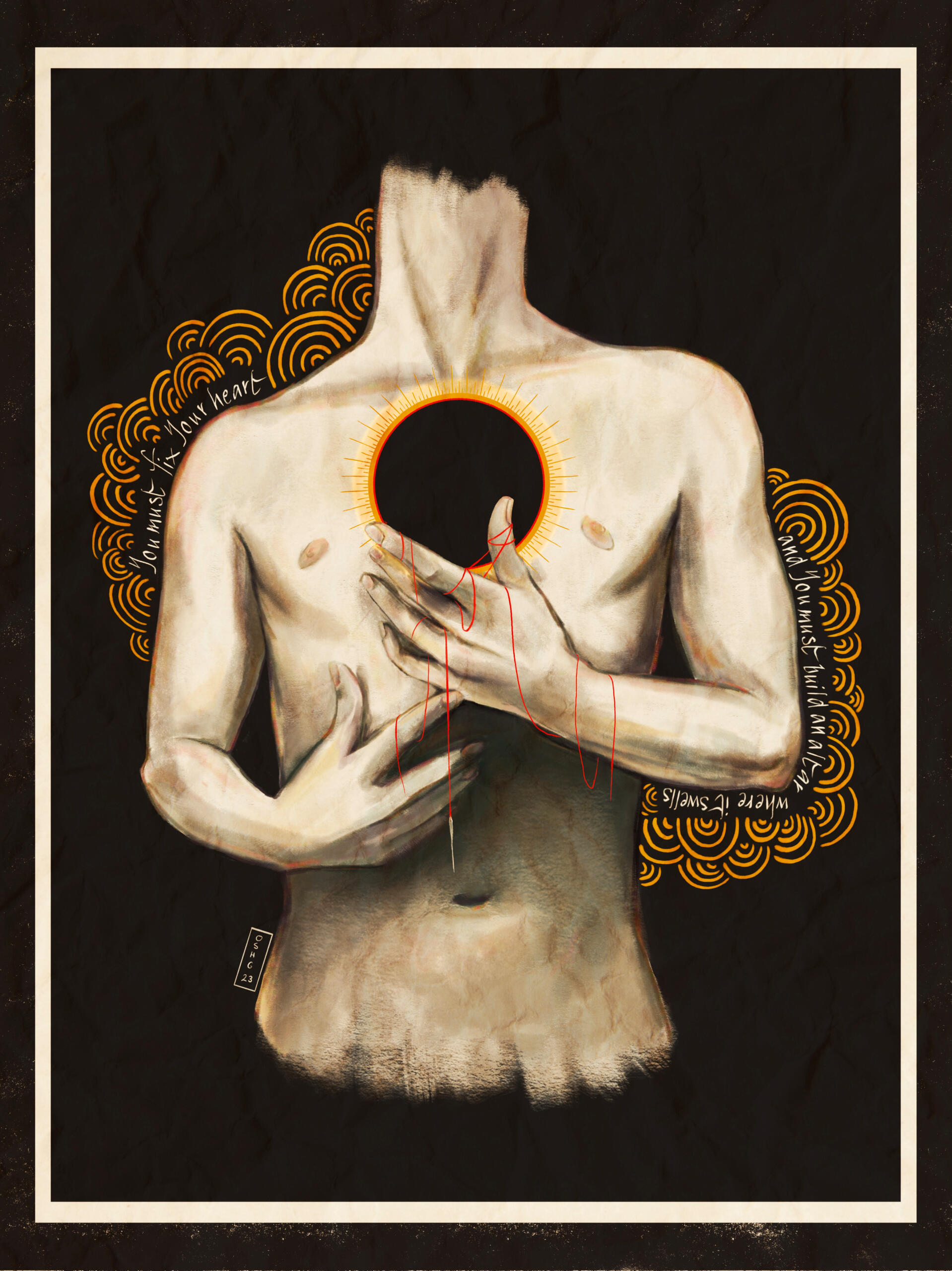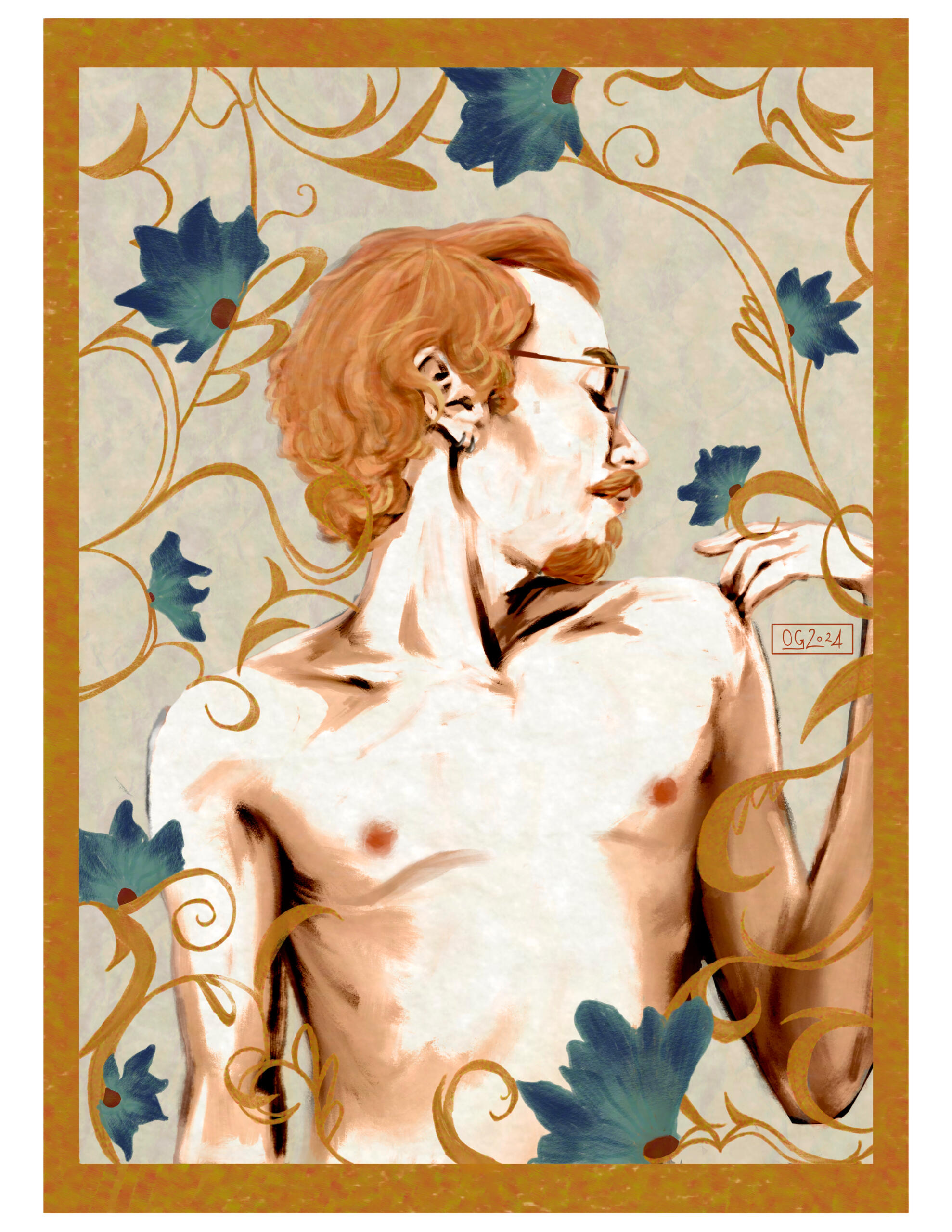 My art is dedicated to expressing queer joy, pleasure, connection, and beauty. I enjoy incorporating elements of traditional art movements, folklore, and mythology, and focus primarily on queer and trans bodies.